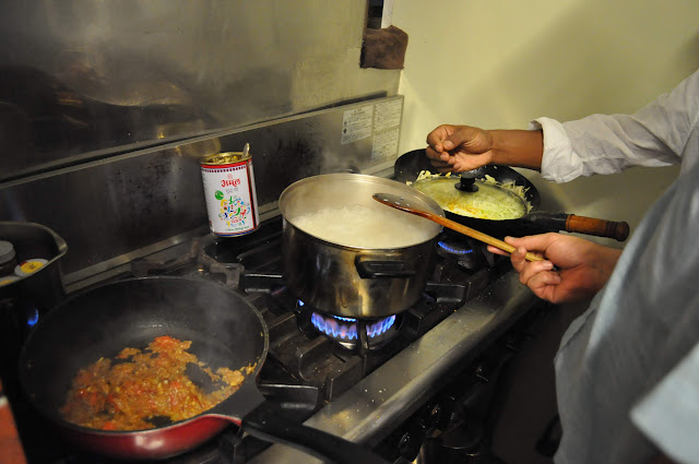 楽しそうに夕食を作る3人。英語でのやりとり、サジンさんの鼻歌のような美声チャントを聞いていると、ここはインドかと錯覚してしまいます。